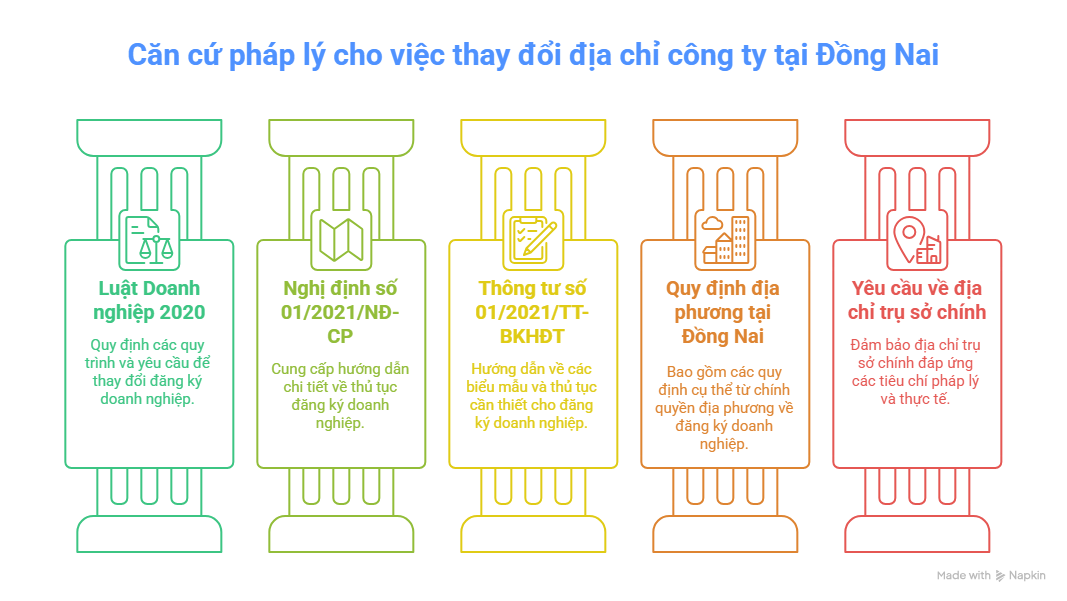 Việc thay đổi địa chỉ công ty tại Đồng Nai được thực hiện dựa trên các căn cứ pháp lý chính sau đây: